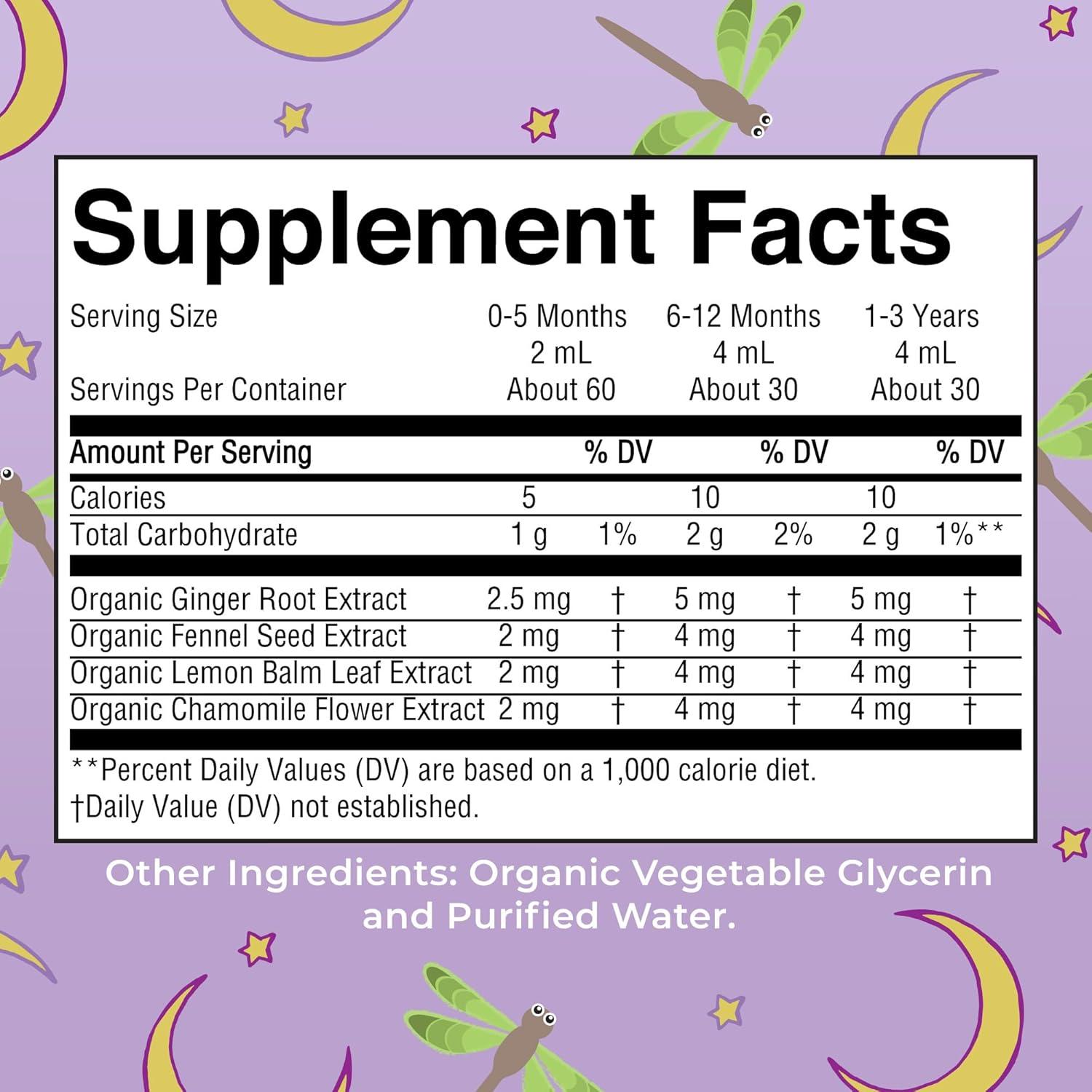Nighttime Gripe Water Drops: This newborn essential is an organic blend of four herbals that's gentle enough for little tummies and specially made for newborns! Nighttime Gripe Water for Babies is gentle with a mild taste and is USDA Organic. Each bottle contains 60 servings for newborns aged 0-5 months, and 30 servings for babies 6 months and older.